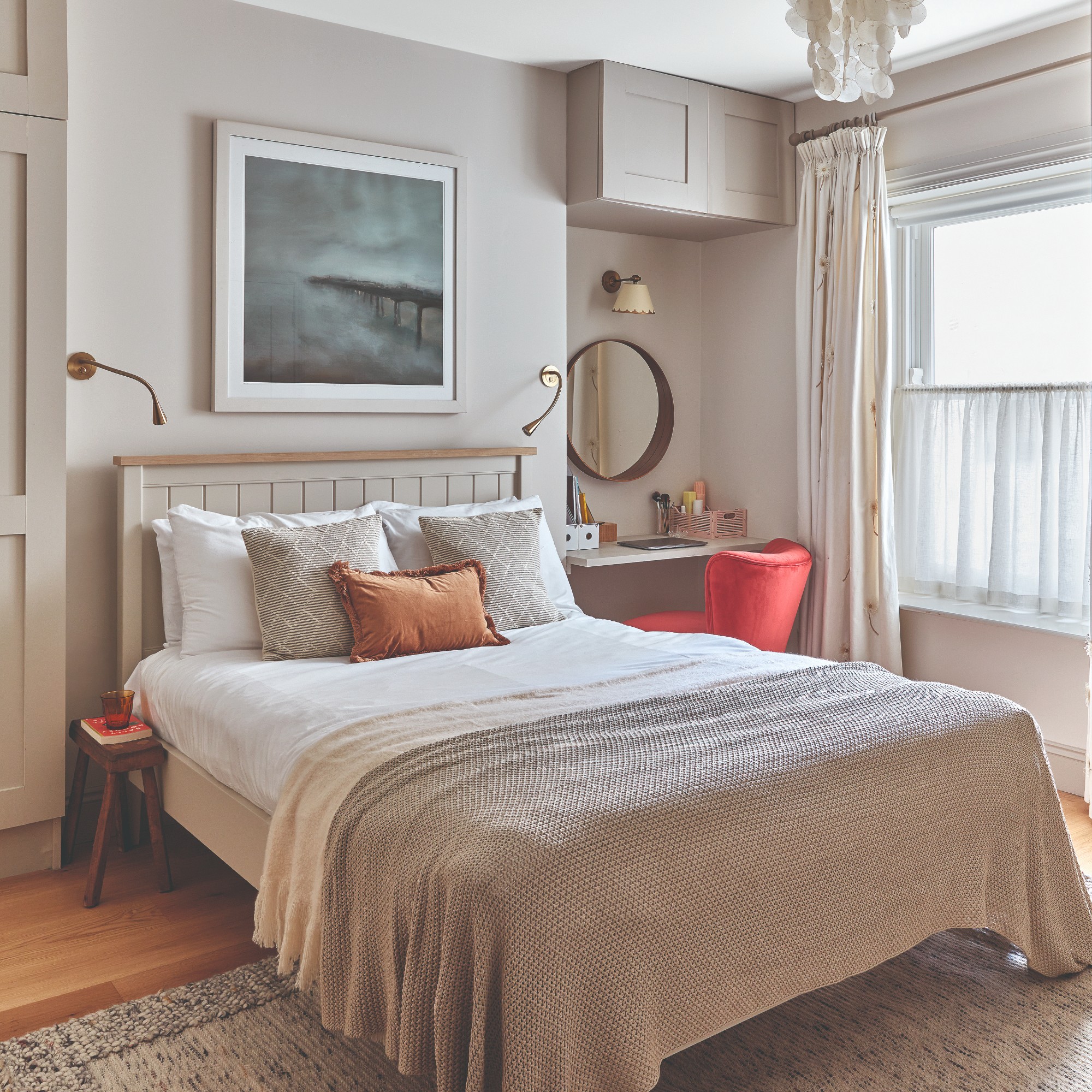 Instead of adding another piece of furniture, make the most of your bed by transforming it into a smart storage feature with shelving built behind the headboard. In a bedroom designed by Summer Thornton, these built-in niches offer a stylish and practical way to showcase handbags, accessories, and other personal favorites while keeping everything within easy reach.